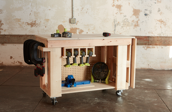 | Filled with Ryobi tools and hardware items, this work bench keeps all your things right at hand. (Photo credit: Ryobi Tools) |
